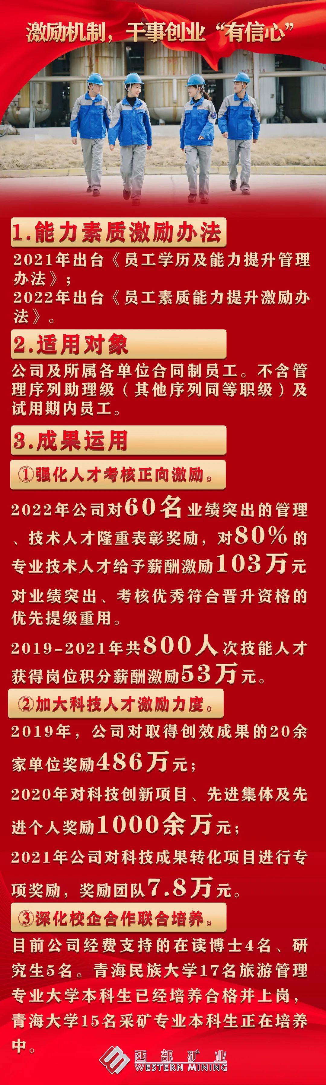 讓全體西礦人都過上好日子,堅(jiān)持發(fā)展成果與職工共享,從打通晉升通道,激發(fā)員工“正能量”到建立健全激勵(lì)機(jī)制,干事創(chuàng)業(yè)“有信心”,公司與職工同頻共振,職工與公司共成長(zhǎng);從為全體員工購(gòu)買補(bǔ)充醫(yī)療保險(xiǎn),保障權(quán)益“有溫度”,到關(guān)注職工身體健康,制度健全“有品質(zhì)”,為員工撐起“健康保護(hù)傘”;從解決“急難愁盼”,讓員工生活工作“更放心”,到繳納企業(yè)年金,讓退休生活“更安心”,推動(dòng)高質(zhì)量發(fā)展與打造高品質(zhì)生活互促共進(jìn)……切實(shí)把好事辦實(shí)、把實(shí)事辦好,辦到職工心坎上,用心用情描繪職工“幸福線”,公司這些福利你都知道嗎?今天,一起深入了解……