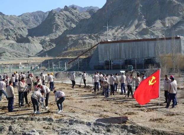 錫鐵山分公司組織全體干部職工進行“熱愛自然、綠化礦區、勞動創造美好生活”徒步走及環境清掃、植樹綠化活動。