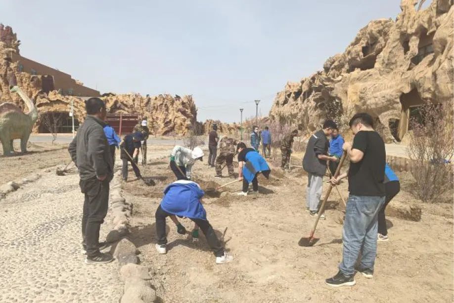 伊吾西礦胡楊文旅公司組織全體職工在景區開展義務植樹活動。