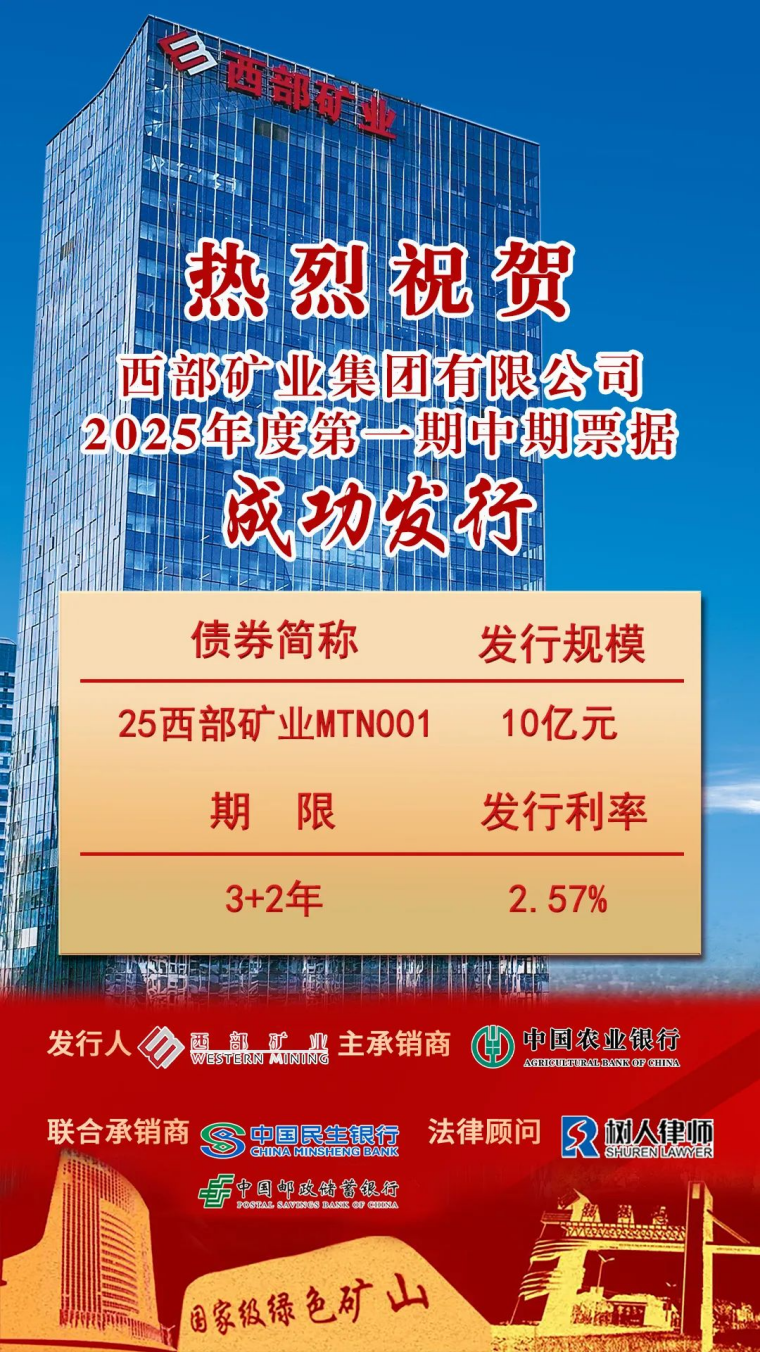 在全省奮力沖刺2025年一季度經濟“開門紅”的關鍵時期,集團公司認真貫徹落實《青海省2025年一季度“開門紅”若干舉措》和全省金融系統工作會議精神,于2月24日成功發行10億元中期票據,發行期限3+2年,票面利率2.57%,發行成本再創新低,發行利率首次接近公司存續債券估值水平。本期債券成功發行,充分說明合作金融機構和市場化投資者對公司綜合實力和發展前景的高度認可,公司在資本市場的影響力和活躍度不斷提升。